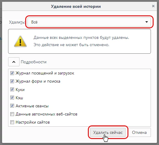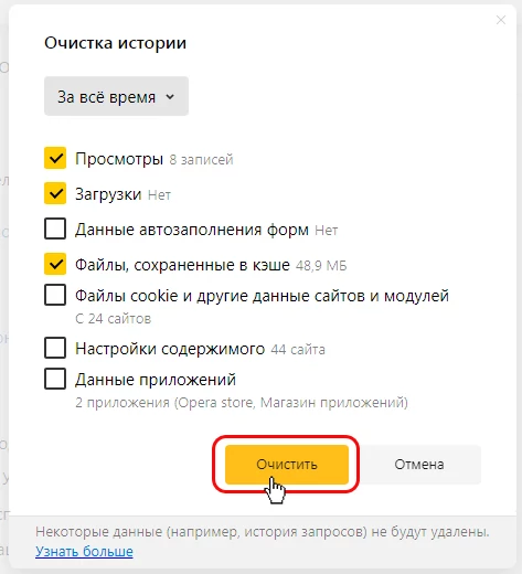 Чтобы удалить временные файлы браузера Yandex.Browser