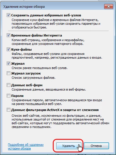 Чтобы удалить временные файлы браузера Internet Explorer
